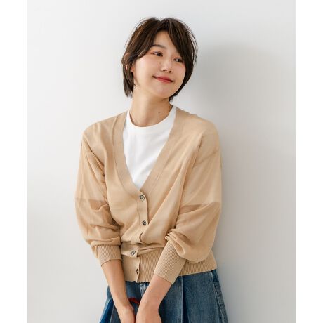 シャリ感のある糸を使用しており、まだまだ暑い日にもピッタリのシアーカーディガンです。