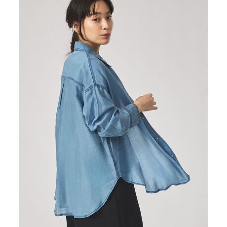 [型番:32513010000]*Detail*デニム見えする素材で仕立てた、シアー感のあるシャツ。柔らかく落ち感があり、織としても使いやすいデザインです。サステナブルなセルロース素材で、環境にも配慮。*Coordinate*ブラックパンツと合わせると、シックで会的な雰囲気に。ベージュやチノ系のボトムと合わせれば、カジュアルに軽快さを演出。織りとして着流すスタイルはもちろん、インしてもすっきりと決まります。