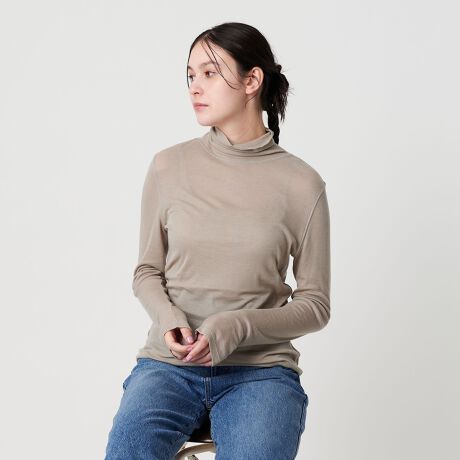肌当たりのやわらかなセルロースブレンドの生地でお作りしたタートルネックトップス。