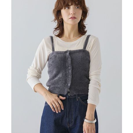 フェザーヤーンニット ふわふわ素材 ニットチューブトップ 肩紐取り外し可 キャミソール風トップス 秋レイヤードコーデ 毛足長めニット 30代 40代 レディース カジュアル 秋冬 25AW AMERICAN HOLIC AMERICAN HOLIC アメリカンホリック アメホリ