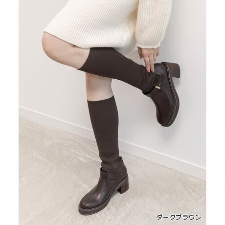 履くだけで今っぽい足元が完成するニットドッキングロングブーツ。