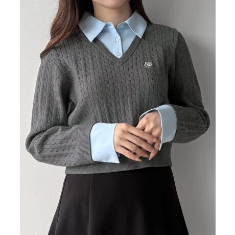 mipiarl 【リボン取り外し可能】シャツドッキングケーブルショートニット