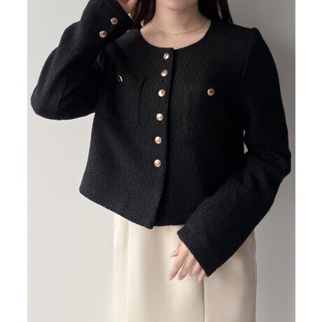 mipiarl 金釦ツイードノーカラーショートジャケット