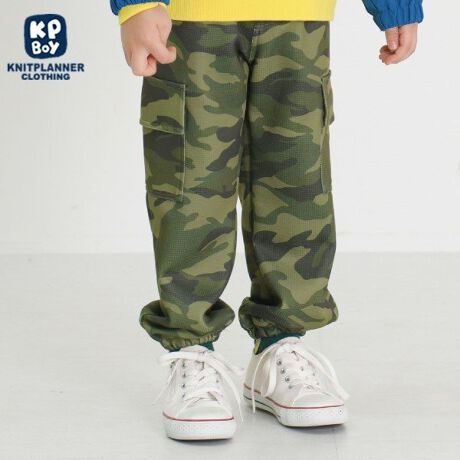 KPBOY 迷彩柄プリントニットツイルパンツ(100〜130)