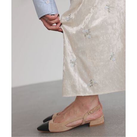・お花の刺繍が可愛いベロア生地のアイラインスカート。