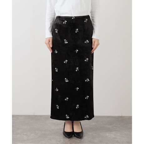 ・お花の刺繍が可愛いベロア生地のアイラインスカート。