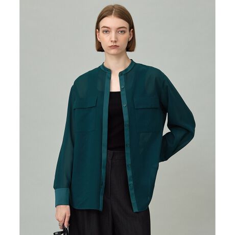 ■デザイン前後差のあるレングスで動きのあるデザインがポイントのバンドカラーシャツです。適度にゆったりとしたサイズ感で、1枚でも、羽織りアイテムとしても着回しが可能で長い時期活躍します。