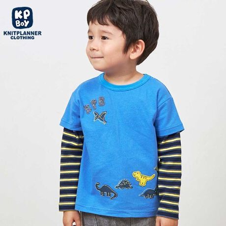 KPBOY ボーダーと無地天竺のレイヤード風長袖Tシャツ(80〜120)