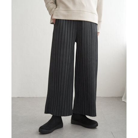 スエード調素材を使った、シーズンムード漂うワイドパンツ。