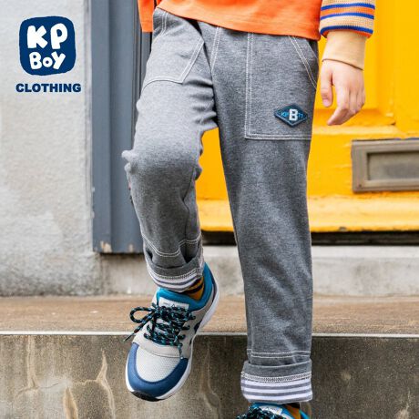 大きなパッチポケットが付いたデニム風ニットツイルのパンツです。