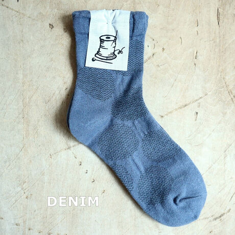 mare(マール)とはフランス語で"小さな池・水たまり"などの意味。ジャガード編みの波のようなギザギザ柄を連ねたドットで水たまりを表現しました。綿麻素材で締め付けすぎず快適なソックス。足を入れる瞬間からふわっと優しく包んでくれるような履き心地で締め付けすぎず快適。素足より快適に心地良く過ごせます。