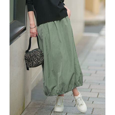 ■デザインバルーンシルエットの今シーズンらしいスカートです。裾部分の内側はドローストリング仕様になっているため、トップスに合わせて着こなしの変化が可能な2WAYデザインです。