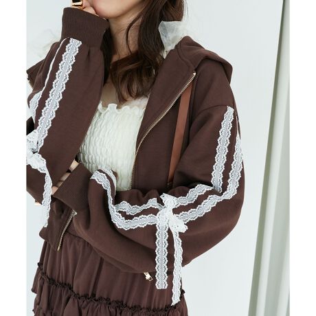 袖のレースラインがほどよくスポーティーで、1枚でブロケットコアなコーデが完成します。