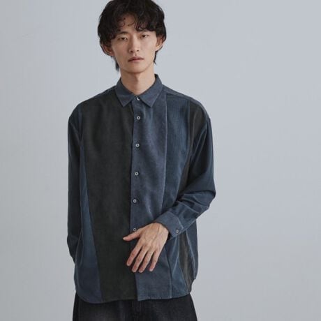 2つの異なる素材感が融合したパネルデザインのシャツ。