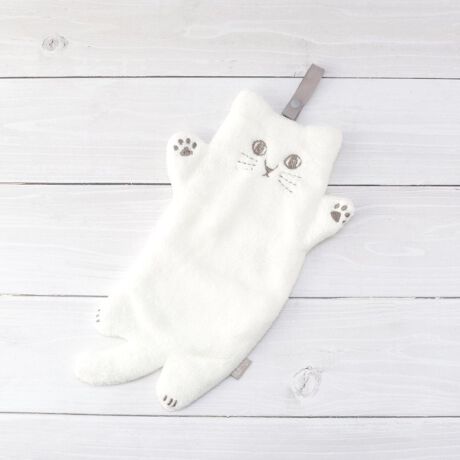 使うたびに癒されるネコのデザインと、優しい肌触りが特徴です。