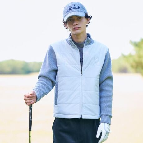 このハイブリットブルゾンは、前後身頃に中綿入りのキルトタフタを使用し、袖には柔らかなニット素材を切り替えたデザインが特徴です。