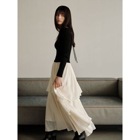 分量感をたっぷりと持たせた軽やかなスカートは、アシンメトリーのティアードデザインがモードな雰囲気を引き立ててくれます。