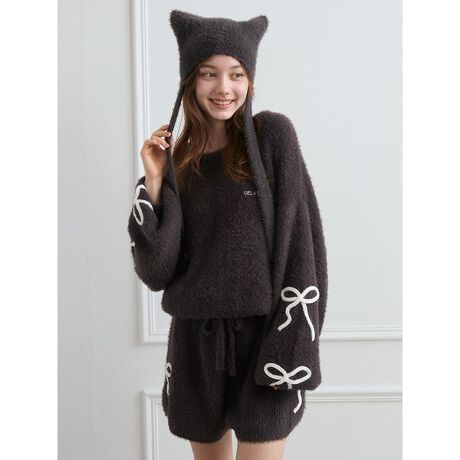 今年のHALLOWEEN COLLECTIONは、トレンドのリボン柄をフィーチャーした女子ライクなモノトーンスタイル。羽根のように軽い’フェザー’ニットに、ぷくっと立体的に仕上げたリボンを縫い付けたロンパースです。背中側はリボン結びで大きく開いているので着脱しやすく、1枚で可愛く着こなせるデザインです。左胸にさりげなくブランドロゴ刺繍も添えました。同シリーズの猫耳バラクラバやレッグウォーマーと合わせるのがおすすめです。