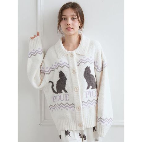 <b>【HALLOWEEN・黒猫ジャガードの襟付きカーディガン】</b>