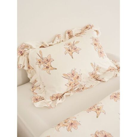<b>【MUCHA・優雅なリリー柄のフリル付きピローケース】</b>