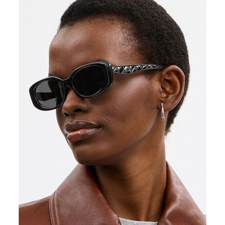 普段のスタイルに魅力を添える、オーバル レクタングル サングラス。アームにコーチのハンドバッグのキルティングを模したモチーフをあしらいました。