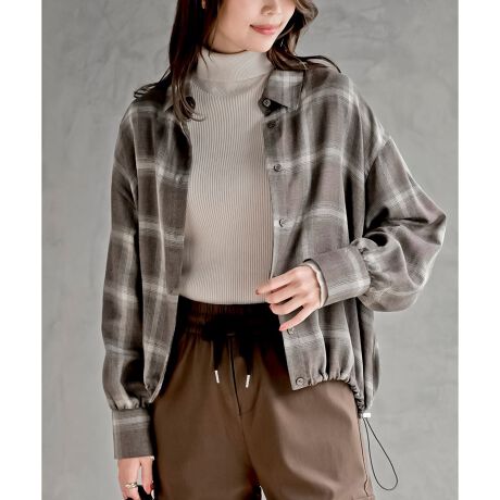 裾ドロストチェックシャツ