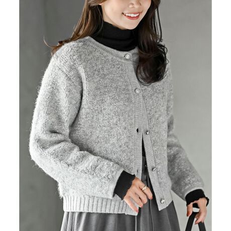 ミックスカラーのニットが上品な印象を与えるカーディガン。