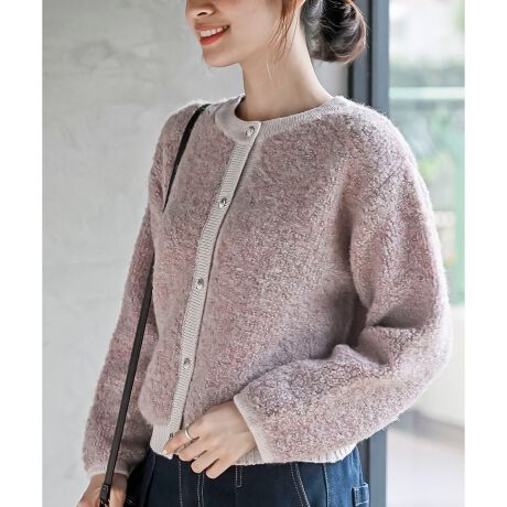 ミックスカラーのニットが上品な印象を与えるカーディガン。