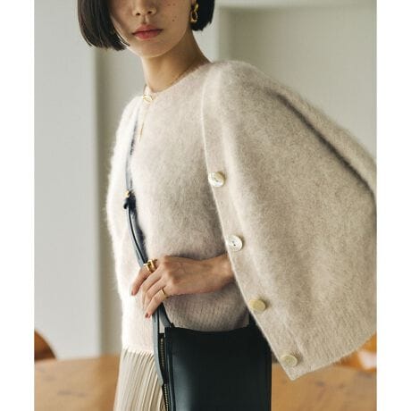 厳選した原毛を使用し、なめらかに紡績しています。さらに風合いを高めるためにカシミヤをブレンドした贅沢な素材に、ふんわりとしたファー加工を施しました。上質な毛並みならではのやわらかなタッチと、ふっくらとした毛吹きが魅力です。