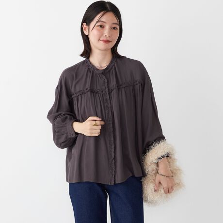 甘さを抑えたフリルデザインで、コーデに馴染むフリルシャツ。