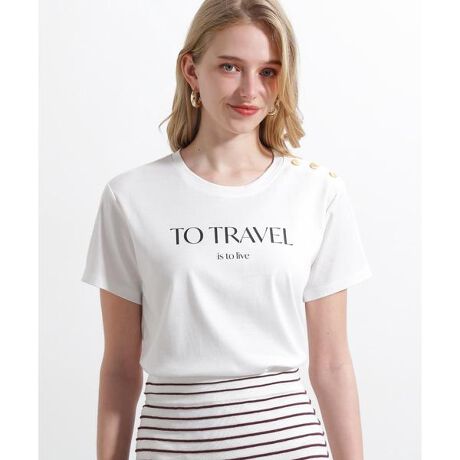 薄手のコットン素材が着心地抜群のロゴTシャツ。大きすぎず、程よくコンパクトで、きれいなシルエットのTシャツです。ボトムにインしてブラウジングさせた着方もおススメです。左肩のゴールドボタンが上品な雰囲気をプラスしてくれます。"TO TRAVEL is to live. (旅することは生きること)"というメッセージをプリント。