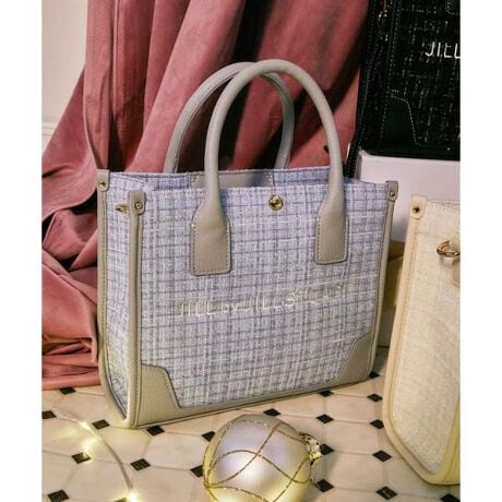 「人気のトートバッグにツイード素材が登場・グレーとブルーはWEB限定カラー」ちらちらと光るフィルム入りのツイード素材を使用した華やかなバッグは、デイリー使いやすい上品さが魅力。形、サイズは定番人気のスカーフトートと同様、サイドのパイピングと底に合皮を合わせ、型崩れしにくいしっかりとしたフォルムです。ショルダーは取り外し可能。※撮影時照明の関係により、色味が違って見える場合がございます。またパソコン・スマートフォンなどの環境により、若干製品と画像のカラーが異なる場合もございます。予めご了承ください。商品の色味は、商品単品画像をご参照下さい。※商品画像はサンプルのため、色味やサイズ等の仕様に変更がある場合がございますので、予めご了承ください。