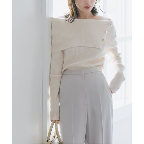 《WEB限定追加》ショルダーボタンタイトリブニット