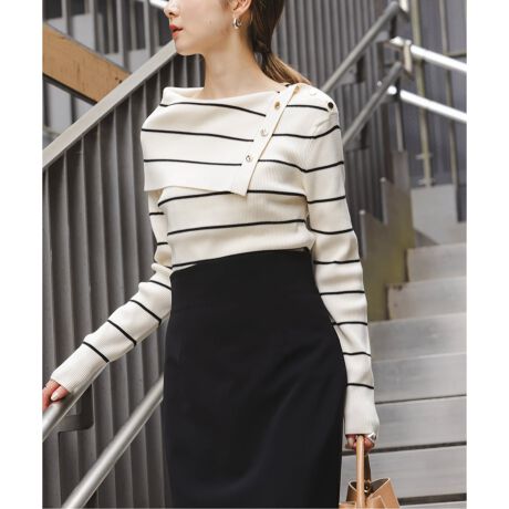 《WEB限定追加》ショルダーボタンタイトリブニット