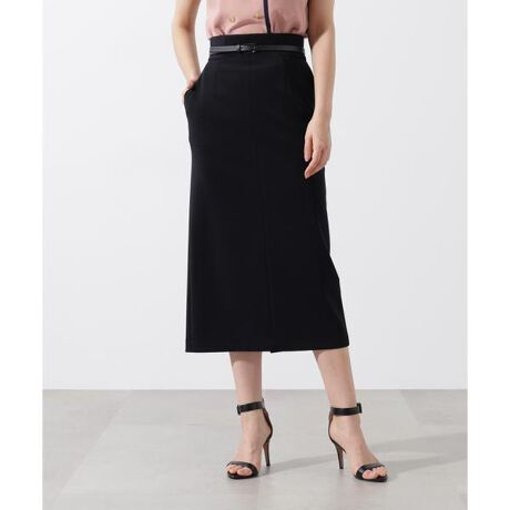 太めのリブで切り替えたサイドウエストが、ウエスト回りにフィット感を与え、見た目にもすっきりとしたアクセントに。スカートとセットの合皮ベルトは、マットで大人っぽい表面感。