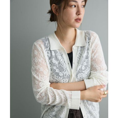 *繊細なレース編みで華やかさを添える、軽やかなニットカーディガン。
