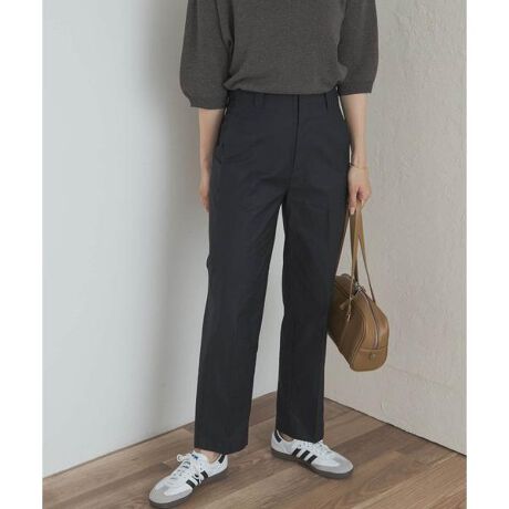 きれいめなチノ素材を使用したストレートシルエットのパンツは、洗練された印象と着回し力を兼ね備えた一着。