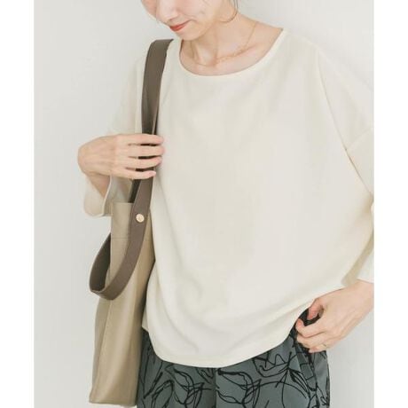 くすみカラーが優しい印象の、旬の七分袖トップス