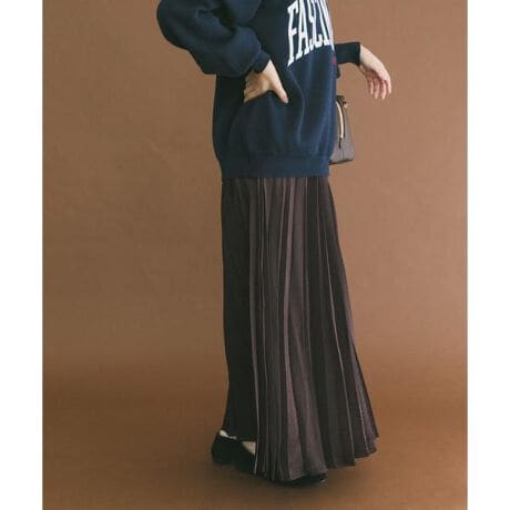 動くたびに揺れるプリーツと、サテンならではの上品な光沢感が魅力の一枚。重めなトップスなどに軽やかさをプラスして、バランスの取れた着こなしに。シンプルなコーディネートもぐっと華やぐ、秋冬のスタイリングにおすすめのアイテムです。