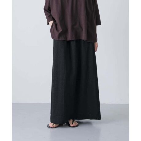 程よくゆとりがあるのにスッキリと見える穏やかなIラインシルエット。快適な着心地を叶えるカットソー素材でご用意しました。裏側にコットンが多くなるように編立られているので肌当たりの良さもポイント。表側はリネンがメインに出ていて上品で涼し気な風合いです。お出かけから日常まで様々なシーンで活躍。天竺素材ならではの優しい伸縮性とベンツ仕様により足さばきが良いです。ウエストは楽に穿ける総ゴム+紐の仕様を採用しています。お手持ちのトップスと、様々なスタイリングをお楽しみください。同素材でイージーパンツもご用意しています。