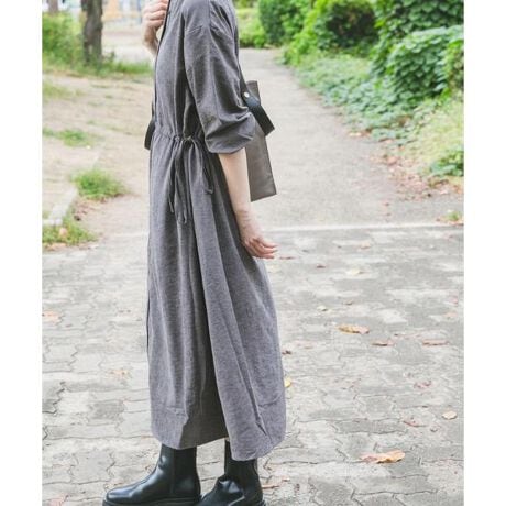『イージーケア』ウエストギャザーロングスリーブワンピース