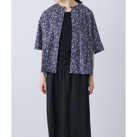存在感を高めるボタニカルプリントがポイントのシャツカーディガン。さらっとしていて、夏から秋口にかけて快適な素材です。シンプルな色使いの総柄が程よく華やかな印象に。クルーネックの前開きデザインはトップスとしてはもちろん、ボタンを開けて羽織りとしても着用が可能。日よけ・冷房対策として1枚持っていると安心できるアイテム。