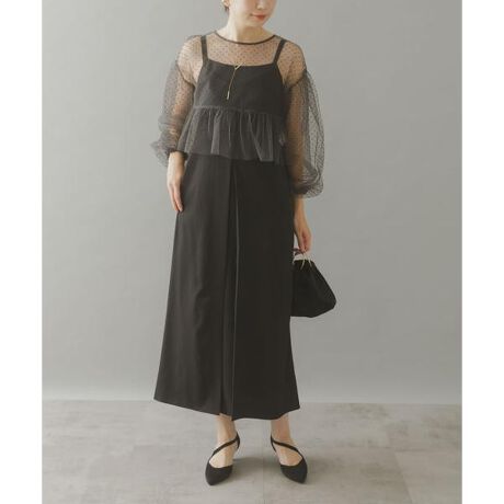 繊細なドット柄のチュールブラウスとシンプルなキャミワンピースがセットになった、着るだけで旬のスタイルが完成する一着。チュールのシアー感が華やかで柔らかな印象をプラスします。フロントに施されたタックデザインが、さりげなくスタイルアップを演出。それぞれ単体でも着回せて、様々な着こなしを楽しめるのも魅力です。キャミワンピースは、お手持ちのジャケットやカーディガンと合わせることで、オフィスやデイリーにも活躍。結婚式やお呼ばれなど、華やかなオケージョンシーンにもぴったりの一着です。