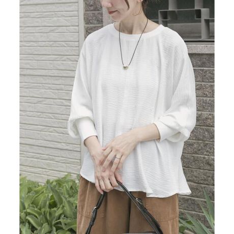 リブ仕様の袖口がボリュームスリーブにさりげないアクセントに。