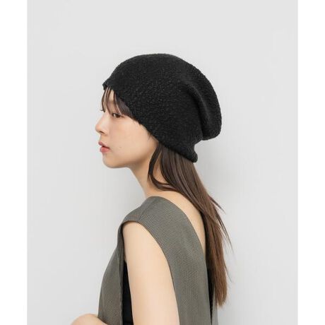 ポコポコと表面感のある糸で編まれたニットビーニー。少し大きめなのでトップをたるませて被ったり、深めに被っていただいたりできます。いつものスタイルに取り入れるだけで旬な印象に仕上がります。