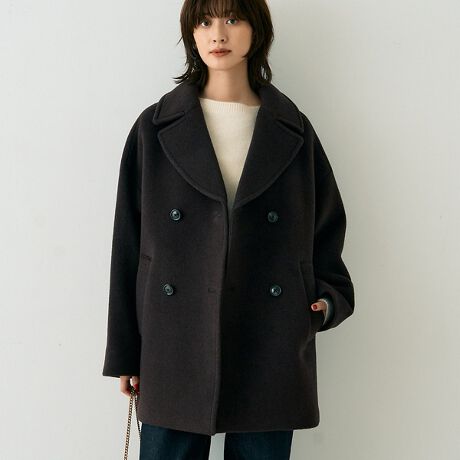 顔周りを包み込む大きめの襟が、フェミニンな印象と小顔見せを両立。