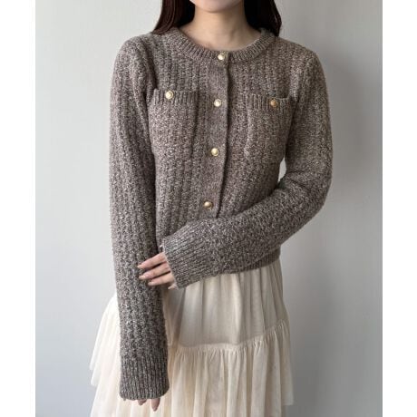 mipiarl ゴールド釦ツイードニットカーディガン