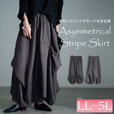 【大きいサイズ】 ストライプランダムタック変形スカート 大きいサイズ レディース スカート ボトムス
