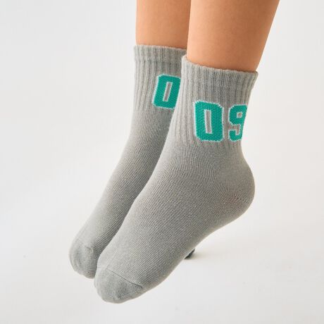 サイドにあしらったナンバリングが目を引くソックスです。