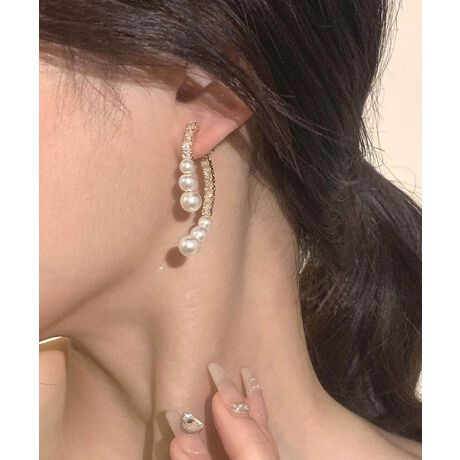 [型番:LJAC524010]耳元で輝くパールとビジューが柔らかな雰囲気を演出してくれるエレガントなピアス程よい大きさのパールとストーンが揺れる度に美しい輝きを放ち存在感あふれる華やかなピアス。ゴールドのパーツに煌めくビジューを埋め込みラグジュアリーな雰囲気を感じられるデザインに。煌めく輝きが上品でリッチな質感のパールは、着用するだけで女性らしいエレガントな雰囲気も演出します。